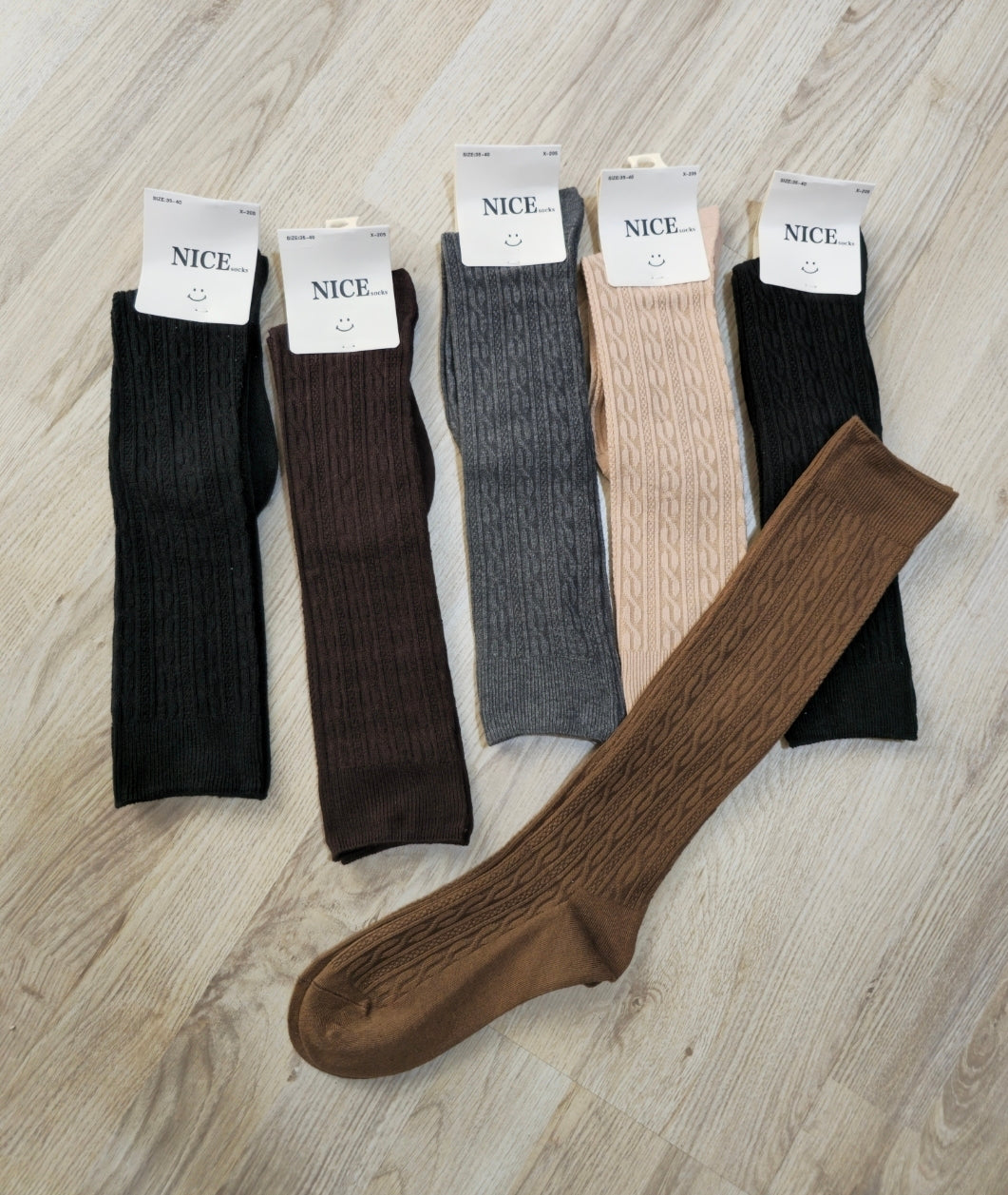 Calze sotto ginocchio con ricami.