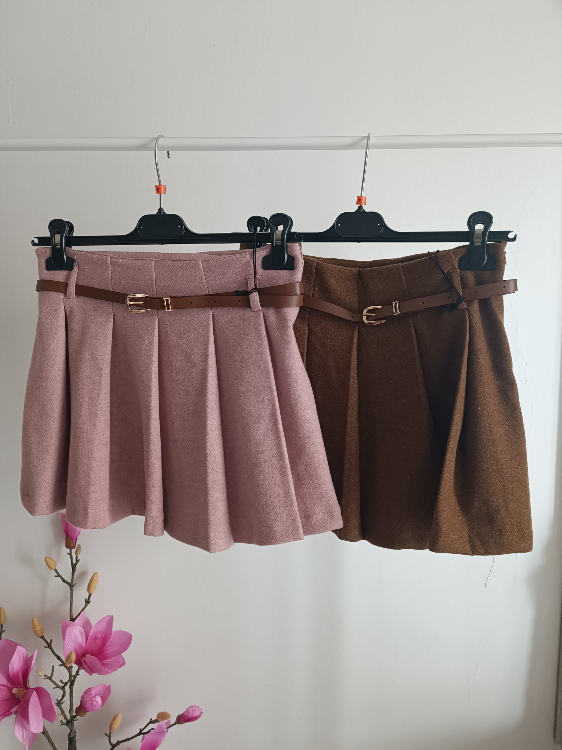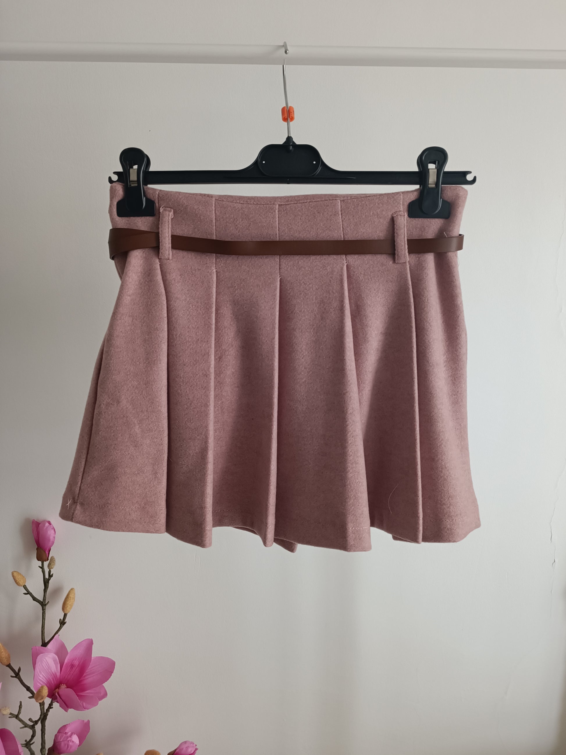 Gonnellina con pieghe. Tessuto lana rasata.