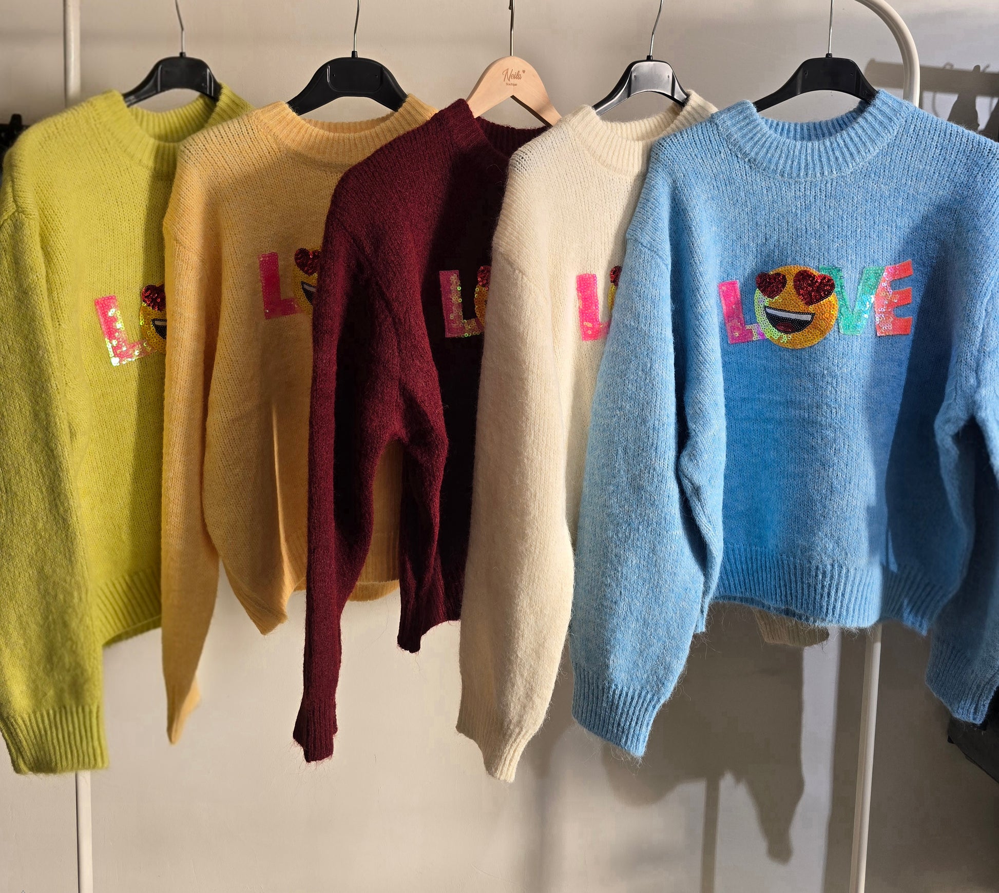 Con applicazione scritta love in paiettes ed emoji